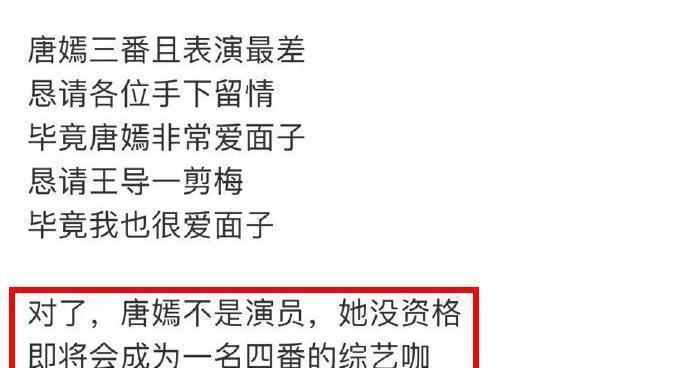 三年磨一剑,结果换回来王家卫的一句唐嫣装。一个男人会在什么情况下说一个女人装呢?唐嫣就像那种从小被呵护的很好的傻白甜,被打压了,还以为是在培养自己,还感谢王家卫。