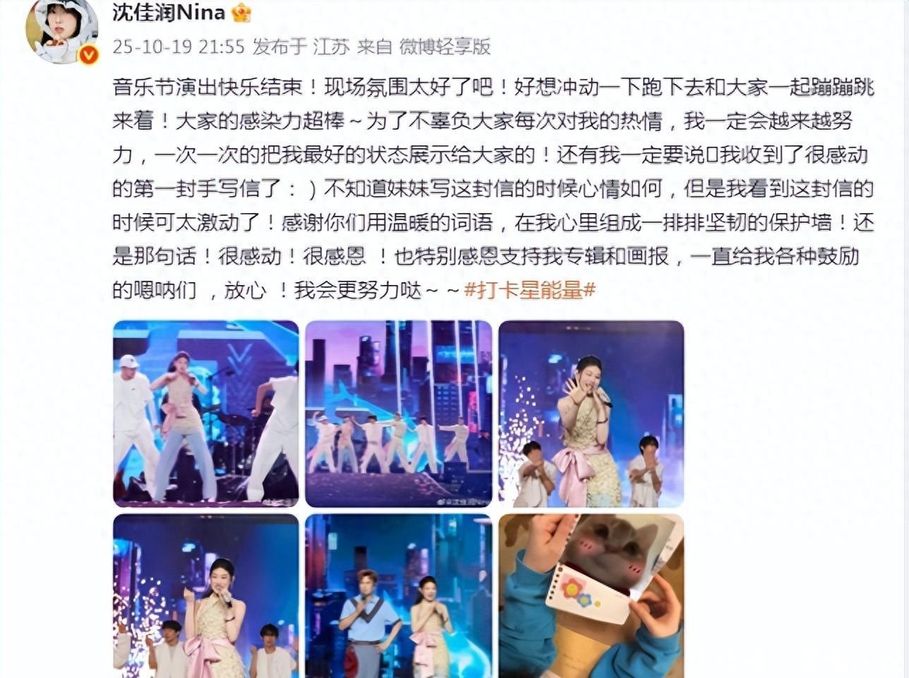 小沈阳女儿音乐节slay全场!与爸爸卖萌超可爱,父女俩长成一张脸 10 月 19 号那天,小沈阳闺女沈佳润在社交平台发了组音乐节表演的照片,真的太让人惊喜啦!她之前就有过舞台经验,一上台那范儿,直接 slay 全场,太牛了!她还说音乐节结束后收到个粉丝妹妹的手写信,看得出来她特别开心又感动,这姑娘是真真诚。 大家都知道,沈佳润之前在国外当歌手 solo 出道,后来回了国。现在粉丝慢慢变多,名气也越来越大,说不定以后能超过她明星爸爸呢!看她舞台上的照片,跟小时候比变化也太大了,小时候五官没长开,总被人说颜值不行,现在可真是 “女大十八变,越变越好看”,特别亮眼。