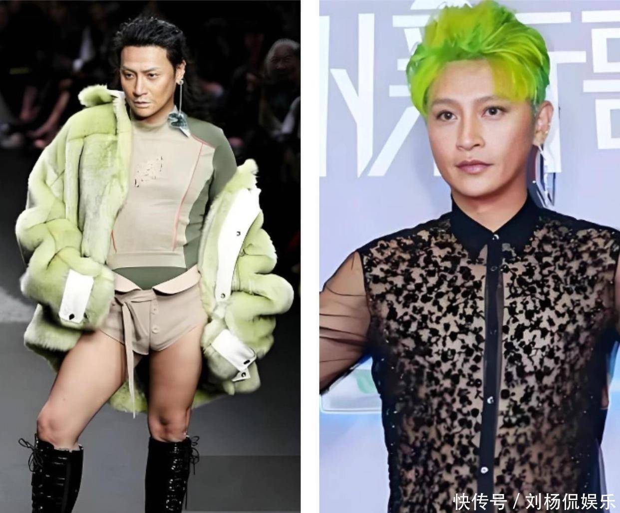 陈志朋在时尚周上的表现也让人忍不住感叹。他那身绿头发、透视衣,踩着十厘米的高跟鞋走场,结果还在台上摔了一跤,照片一传开,全网都刷屏,“小虎队之耻”的骂声也是此起彼伏。他之后解释说“是合约逼的,违约得赔天价”,可是大家只记得他为了吸引眼球,把多年的好形象彻底毁掉了。